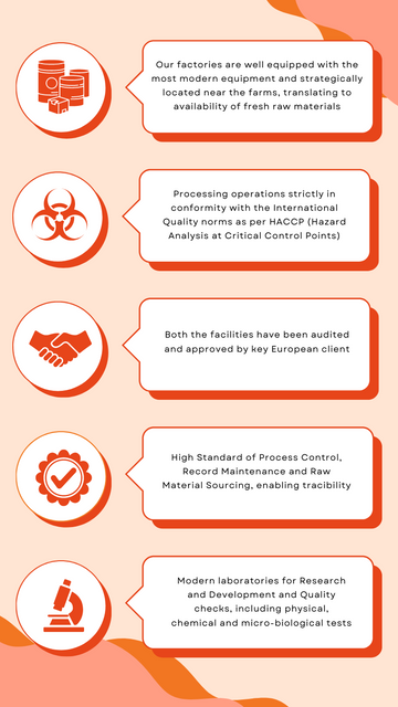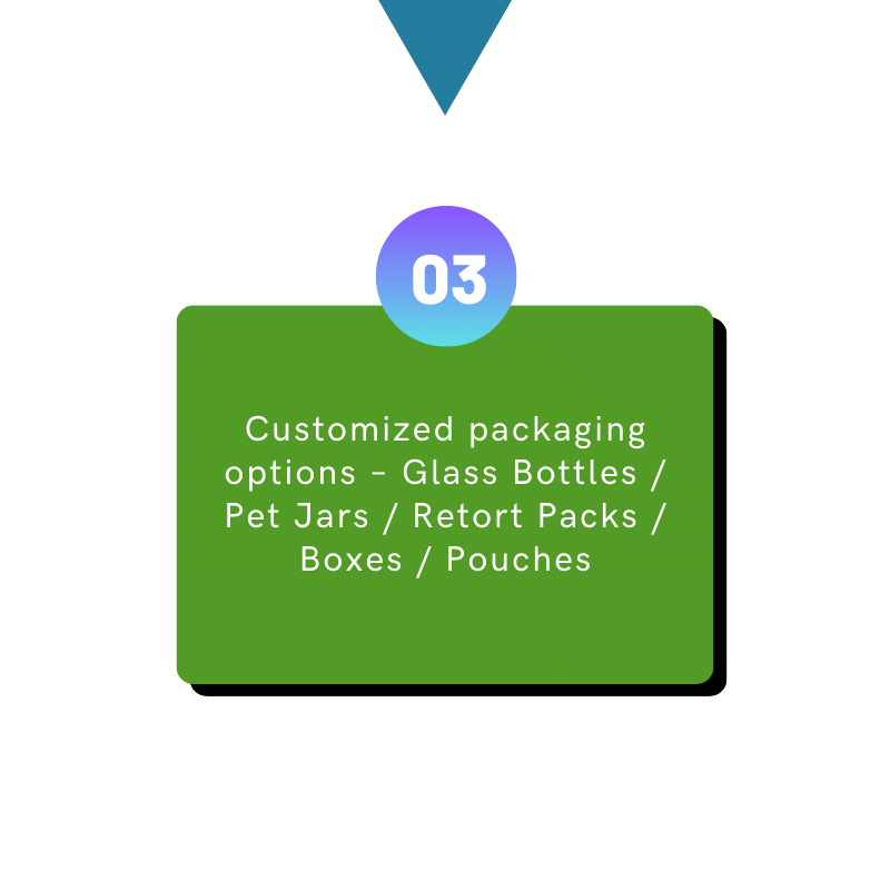 We are equipped with the latest technology to offer a range of innovativepackaging options. The products can be packaged as cold filled, hot filled, frozen or chilled, pasteurised or retorted, to meet the end use requirements.