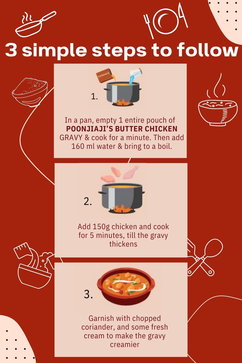 Discover POONJIAJI'S Ready to Cook Gravies—your key to delicious meals in minutes. With authentic flavors and top-notch ingredients, these culinary wonders revolutionize your kitchen. Experience hassle-free cooking with a simple 2-step recipe, savoring every bite of exquisite flavors. Embrace the convenience of gourmet meals at your fingertips, bidding farewell to lengthy preparations.