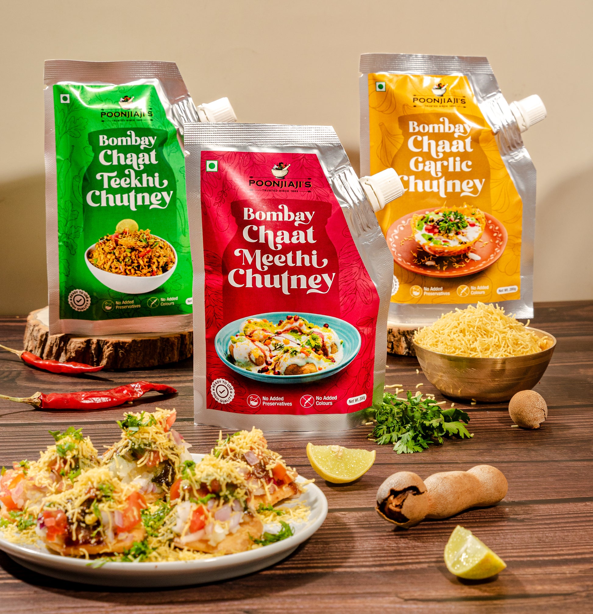 Discover the gourmet delight of POONJIAJI'S Ready-to-Serve Chutneys. Made with the finest ingredients, they perfectly complement a variety of snacks, capturing the authentic flavors of Bombay street food. Elevate your dish with a symphony of sweet, salty, spicy, and tangy notes, indulging your taste buds like never before.