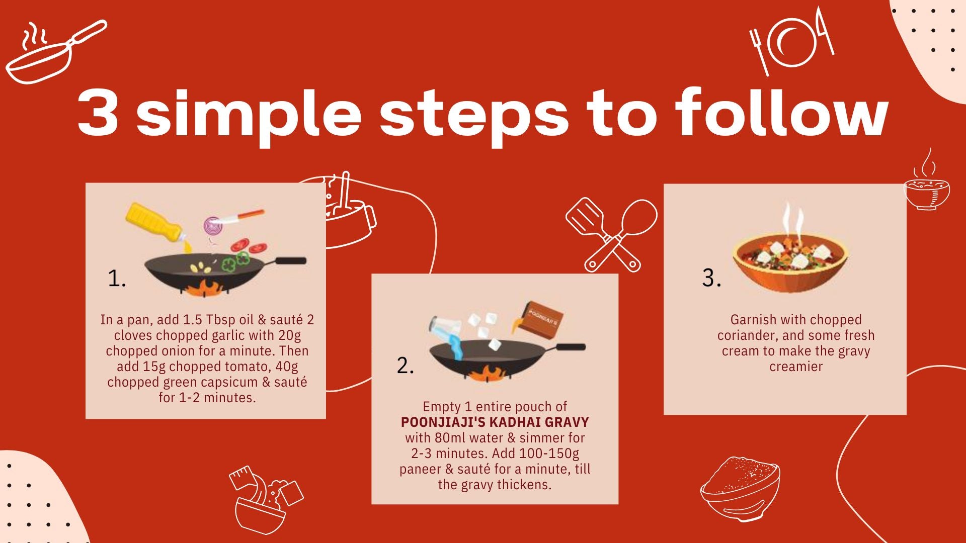 Discover POONJIAJI'S Ready to Cook Gravies—your key to delicious meals in minutes. With authentic flavors and top-notch ingredients, these culinary wonders revolutionize your kitchen. Experience hassle-free cooking with a simple 2-step recipe, savoring every bite of exquisite flavors. Embrace the convenience of gourmet meals at your fingertips, bidding farewell to lengthy preparations.