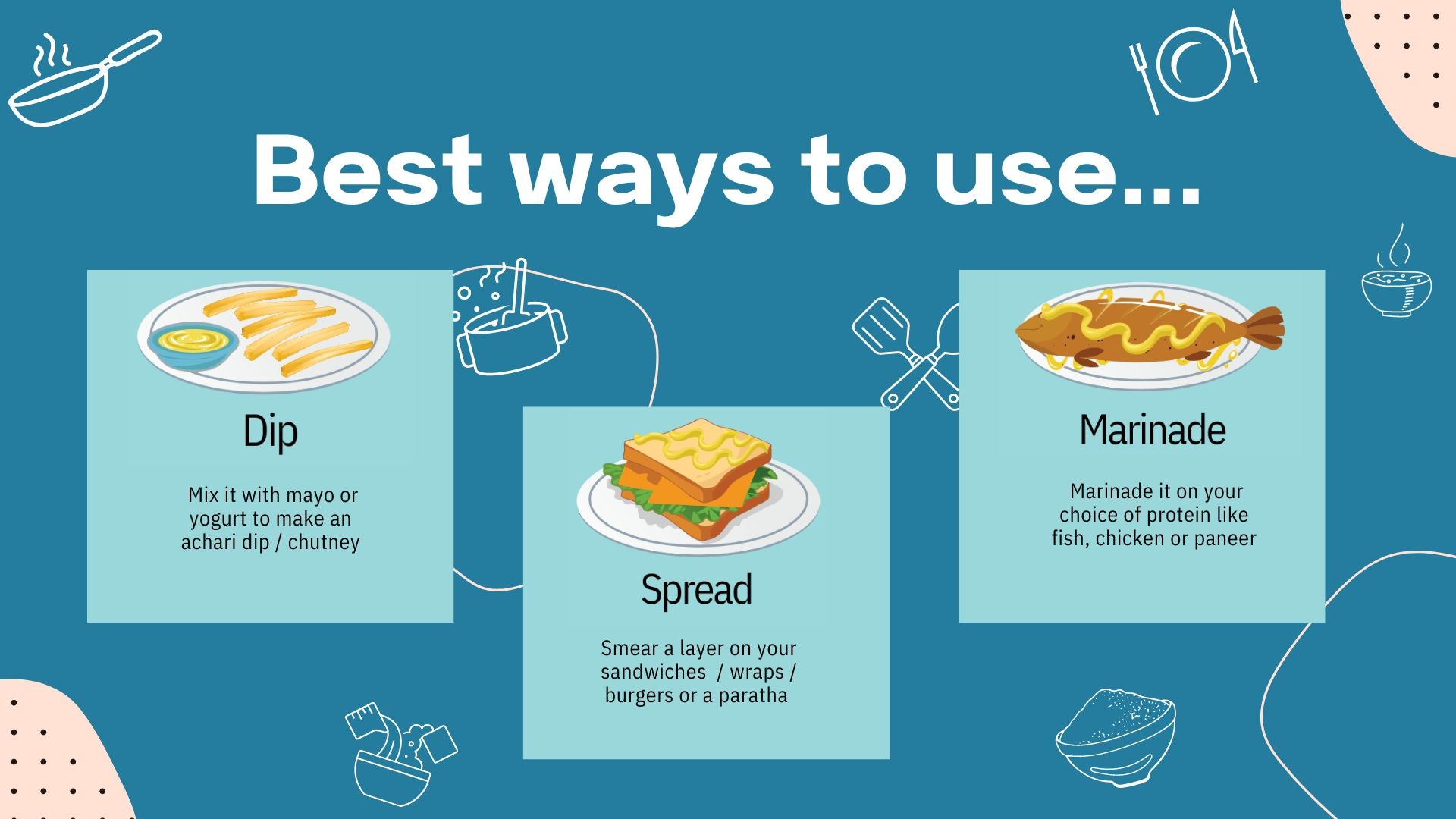 Whether you're craving a DIP to accompany your snacks, a zesty SPREAD for sandwiches, burgers, or wraps, or a flavorful MARINADE for meats and vegetables, this pickle paste delivers on all fronts.