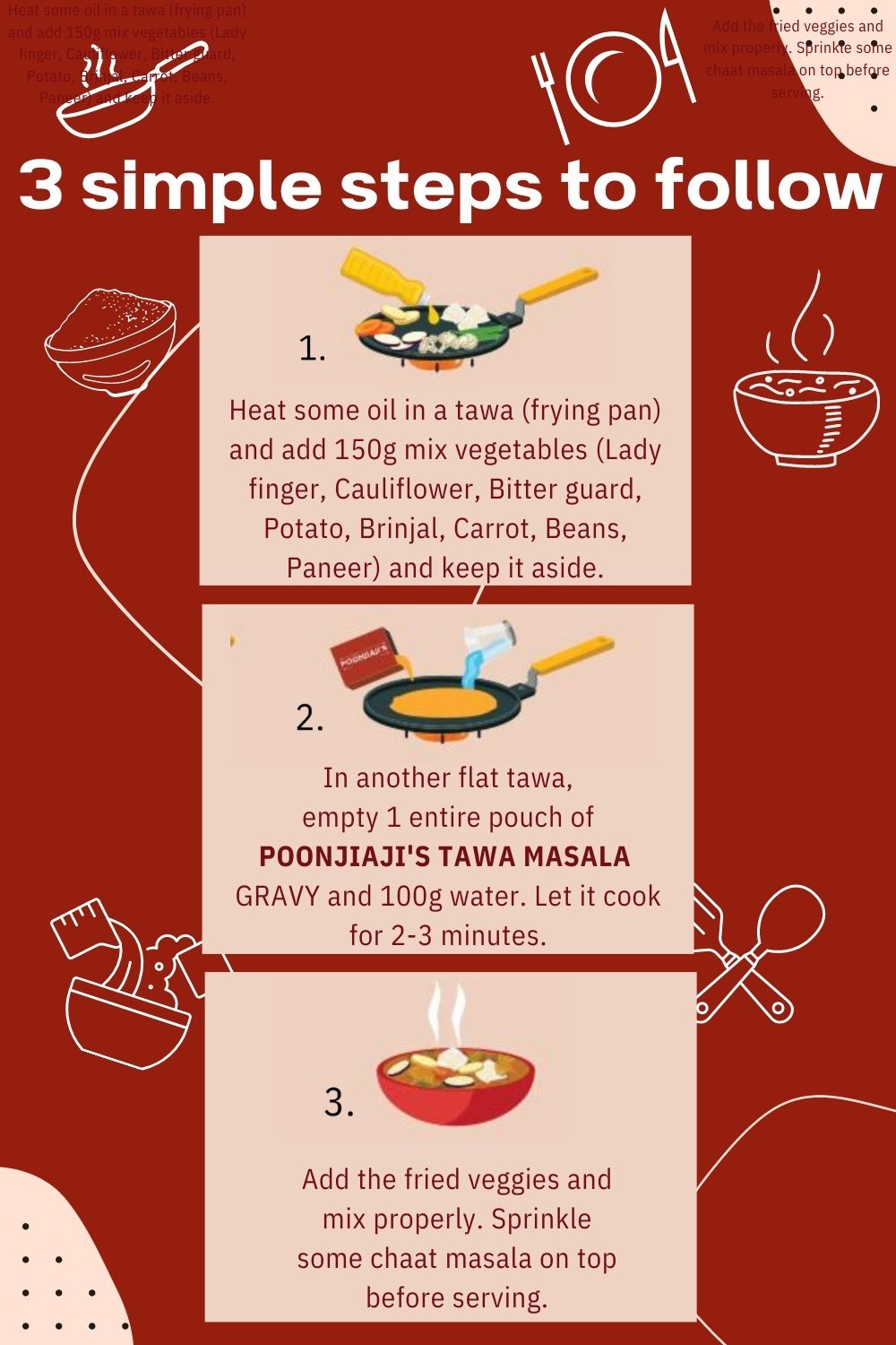 Discover POONJIAJI'S Ready to Cook Gravies—your key to delicious meals in minutes. With authentic flavors and top-notch ingredients, these culinary wonders revolutionize your kitchen. Experience hassle-free cooking with a simple 2-step recipe, savoring every bite of exquisite flavors. Embrace the convenience of gourmet meals at your fingertips, bidding farewell to lengthy preparations.
